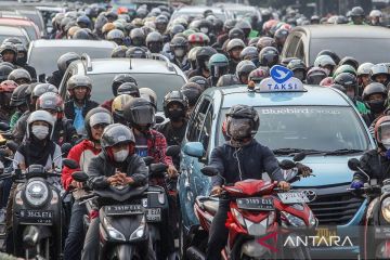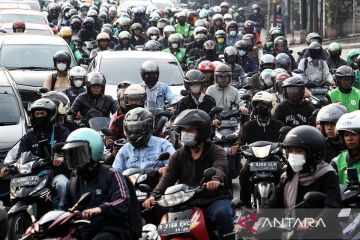 Kepadatan kendaraan di Jalan Raya Margonda, Depok, Jawa Barat, Jumat (1/9/2023). Menurut Menteri Lingkungan Hidup dan Kehutanan (LHK) Siti Nurbaya Bakar, penyebab polusi udara di kawasan Jakarta, Bogor, Depok, Tangerang, dan Bekasi (Jabodetabek) antara lain berasal dari asap kendaraan bermotor sebesar 44 persen dan 34 persen dari Pembangkit Listrik Tenaga Uap (PLTU). ANTARA FOTO/Yulius Satria Wijaya/Spt.
