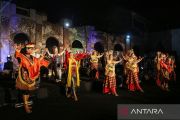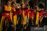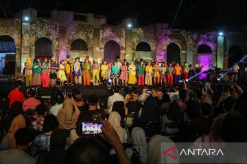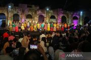 Penari dari Kagama Kolaborasi menampilkan tari cakrawala mini Indonesia dalam pertunjukan seni Festival Kota Lama 2023 di Laroka Teater, Semarang, Jawa Tengah, Sabtu (9/9/2023). Pertunjukan seni yang diikuti komunitas Keluarga Alumni Universitas Gadjah Mada (Kagama) dari berbagai daerah itu untuk memeriahkan Festival ke-12 Kota Lama yang telah dinobatkan dalam 10 terbaik Kharisma Event Nusantara (KEN) 2023 oleh Kementerian Pariwisata dan Ekonomi Kreatif. ANTARA FOTO/Makna Zaezar/tom.ANTARA FOTO/Makna Zaezar (ANTARA FOTO/Makna Zaezar)