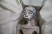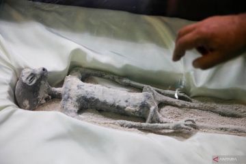 Sosok kecil spesimen, yang menurut jurnalis Meksiko dan penggila UFO, Jaime Maussan, tidak ada hubungannya dengan spesies Bumi mana pun yang diketahui dan ia presentasikan bersama spesies lainnya ke Kongres Meksiko awal pekan ini, terlihat dalam foto, di Mexico City, Meksiko, Jumat (15/9/2023). ANTARA FOTO/Reuters-Raquel Cunha/hp.