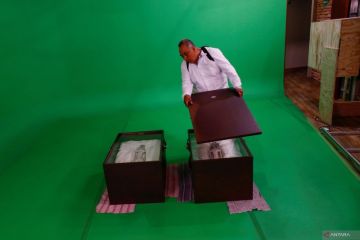 Seorang petugas menutup peti salah satu dari dua peti kayu yang berisi spesimen-spesimen kecil, yang menurut jurnalis Meksiko dan penggemar UFO, Jaime Maussan, tidak ada hubungannya dengan spesies Bumi yang diketahui dan ia presentasikan ke Kongres Meksiko awal pekan ini, di Mexico City, Meksiko Jumat (15/9/2023). ANTARA FOTO/Reuters-Raquel Cunha/hp.