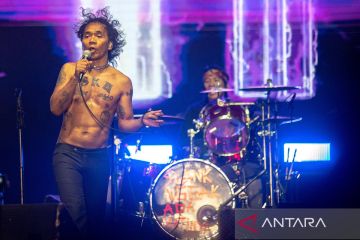 Aksi grup musik Slank featruing Pay Burman saat tampil dalam Jogjarockarta Internasional Musik Festival 2023 di Stadion Kridosono, Yogyakarta, Sabtu (30/9/2023). Slank membawakan sejumlah lagu antara lain Virus, I Miss U But I Hate U, Maaf, dan Mars Slank. ANTARA FOTO/Andreas Fitri Atmoko/Spt.