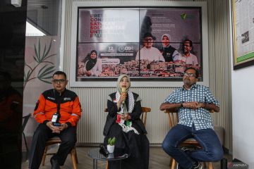 Direktur Komunikasi dan Teknologi Dompet Dhuafa Prima Hadi Putra (kiri), GM Kesehatan Dompet Dhuafa Yeni Purnamasari (tengah) dan Aktivis HAM Hariz Azhar (kanan) berbicara saat konferensi pers Satukan Solidaritas Untuk Rakyat Palestina di Dompet Dhuafa Philanthropy Building, Jakarta, Kamis (12/10/2023). Dalam kegiatan tersebut, Dompet Dhuafa mendorong kesatuan masyarakat Indonesia untuk terus berupaya menggulirkan program-program kemanusiaan bagi rakyat Palestina. ANTARA FOTO/Fauzan/hp.