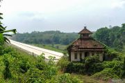 Kondisi mushola yang belum digusur pada proyek tol Serang-Panimbang seksi II di Desa Anggalan, Lebak, Banten, Minggu (22/10/2023). Bangunan mushola tersebut hinggi kini belum dibongkar karena terkendala pembebasan lahan. ANTARA FOTO/Muhammad Bagus Khoirunas/aww.