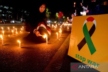 Mahasiswi menyalakan lilit saat mengikuti aksi damai Bela Palestina di depan Monumen Mandala, Makassar, Sulawesi Selatan, Kamis (19/10/2023). Aksi yang digelar berbagai elemen mahasiswa dan masyarakat tersebut sebagai bentuk solidaritas dan dukungan kepada rakyat Palestina dalam menghadapi konflik. ANTARA FOTO/Hasrul Said/tom.