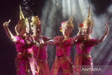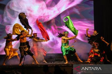 Penari mementaskan tari kolaborasi berjudul Panji Semirang dalam ASEAN Panji Festival 2023 di Balai Kota Malang, Jawa Timur, Sabtu (21/10/2023). Festival yang diadakan di beberapa kota tersebut diselenggarakan oleh Kementerian Pendidikan Kebudayaan Riset dan Teknologi dalam rangka memperingati sastra Panji yang sudah ditetapkan sebagai Memory of the World (MoW) oleh UNESCO pada 31 Oktober 2017. ANTARA FOTO/Ari Bowo Sucipto/tom.