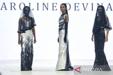 Model memperagakan busana rancangan desainer Carolina Devina dengan judul Why Am I Still Feel Lonely?pada final Lomba Perancang Mode 2023 dalam Jakarta Fashion Week (JFW) 2024 di Pondok Indah Mall 3, Jakarta, Selasa (24/10/2023). Lomba tersebut menampilkan 10 finalis perancang mode muda dengan tema "Authenticity". ANTARA FOTO/Muhammad Adimaja/rwa.