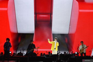 Band D'Masiv tampil dalam puncak peringatan Hari Sumpah Pemuda di Lapangan Silang Monumen Nasional (Monas), Jakarta, Sabtu (28/10/2023). Peringatan Hari Sumpah Pemuda ke-95 tersebut mengusung tema "Bersama Majukan Indonesia" bertujuan mengangkat semangat kolaborasi dari keanekaragaman suku, bahasa, dan budaya untuk kemajuan bangsa. ANTARA FOTO/Aditya Pradana Putra/foc.