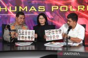 Karo Penmas Divhumas Polri Brigjen Pol Ahmad Ramadhan (kiri) bersama Juru bicara Densus 88 Kombes Pol Aswin Siregar (kanan) menunjukkan foto-foto tersangka saat konferensi pers terkait penangkapan tersangka tindak pidana terorisme di Jakarta, Selasa (31/10/2023). Densus 88 pada Oktober ini berhasil menangkap 59 tersangka dengan barang bukti senapan serbu AK-47, revolver, senapan angin, sejumlah amunisi dan magasin, senjata tajam, serta buku-buku propaganda yang diduga akan digunakan untuk menggagalkan Pemilu 2024. ANTARA FOTO/Akbar Nugroho Gumay/Spt.