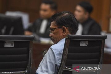 Terdakwa kasus dugaan korupsi penyediaan infrastruktur BTS 4G dan infrastruktur pendukung paket 1, 2, 3, 4 dan 5 dari BAKTI Kemenkominfo tahun 2020 - 2022 Johnny G Plate membacakan nota pembelaan (pleidoi) pada sidang lanjutan di Pengadilan Tipikor, Jakarta, Rabu (1/11/2023). Dalam pembelaannya mantan menkominfo tersebut menyampaikan permohonan maaf kepada Presiden Joko Widodo dan masyarakat di wilayah 3T karena pembangunan menara BTS 4G tidak dapat diselesaikan tepat waktu, dan meminta keringanan hukuman dari tuntutan JPU. ANTARA FOTO/Muhammad Adimaja/Spt.