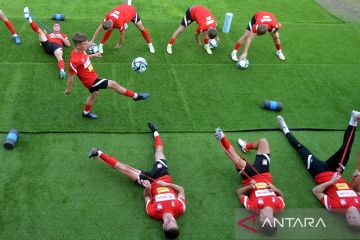 Sejumlah pesepak bola Tim Nasional Polandia U-17 mengikuti sesi latihan menjelang Piala Dunia U-17 2023 di Lapangan Gelora Samudra, Badung, Bali, Senin (6/11/2023). Timnas Polandia U-17 akan bertanding pada grup D Piala Dunia U-17 2023 bersama Argentina, Jepang dan Senegal. ANTARA FOTO/Fikri Yusuf/wpa
