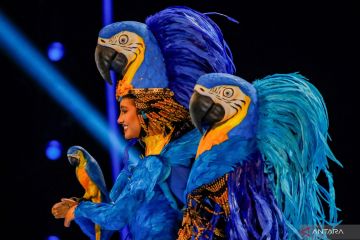 Miss Brasil Maria Brechane tampil di sesi National Costume Show ajang Miss Universe ke-72 di San Salvador, El Salvador, Kamis (16/11/2023). ANTARA FOTO/REUTERS/Jose Cabezas/foc.