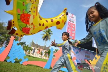 Anak-anak bermain saat Festival Anak di halaman Istana Gubernur Sumatera Barat di Padang, Sabtu (18/11/2023). Festival Anak bertajuk Pertemuan di Taman Bermain menghadirkan ruang temu yang inklusif untuk anak sekaligus dalam rangka menyambut Hari Anak Sedunia pada 20 November. .ANTARA FOTO/Iggoy el Fitra/YU