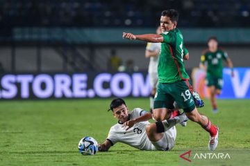 Ekspresi pesepak bola Timnas Meksiko usai pertandingan melawan Timnas Selandia Baru pada babak penyisihan Grup F Piala Dunia U-17 2023 di Stadion Si Jalak Harupat, Kabupaten Bandung, Jawa Barat, Sabtu (18/11/2023). Meksiko menang atas Selandia Baru dengan skor 4-0. ANTARA FOTO/M Agung Rajasa/YU