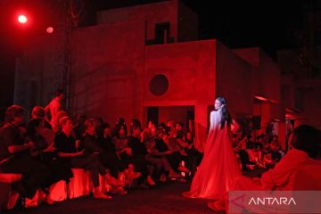 Model memperagakan busana koleksi The Tailor Made 01 saat pembukaan Teras Lakon Indonesia di Gading Serpong, Kabupaten Tangerang, Banten, Rabu (29/11/2023). Teras Lakon Indonesia tersebut bertujuan untuk menjadi pusat dan wadah yang mempertemukan berbagai ahli serta insan kreatif dari berbagai latar belakang dalam usaha pelestarian budaya Indonesia. ANTARA FOTO/Muhammad Iqbal/nym.