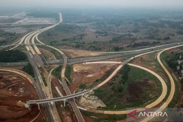 Foto udara proyek simpang susun Jalan Tol Jakarta-Cikampek II Selatan di Sadang, Kabupaten Purwakarta, Jawa Barat, Minggu (3/12/2023). Menteri PUPR Basuki Hadimuljono menyatakan Jalan Tol Jakarta Cikampek II Selatan akan difungsikan pada masa libur Natal 2023 dan Tahun Baru 2024 guna mengurai kemacetan yang kerap kali terjadi di ruas tol Jakarta Cikampek. ANTARA FOTO/Raisan Al Farisi/YU