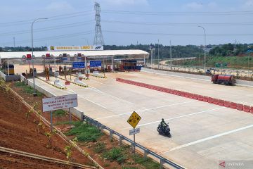 Dua pekerja berada di gerbang tol Limo 2 tol Cinere - Jagorawi (Cijago) Seksi 3B kawasan Limo, Depok, Jawa Barat, Selasa (5/12/2023). Kementerian PUPR bersama Badan Usaha Jalan Tol (BUJT) berencana akan mengoperasikan tol Cinere - Jagorawi ruas Limo - Krukut secara penuh jelang libur Natal dan Tahun Baru 2024. ANTARA FOTO/Muhammad Iqbal/foc.