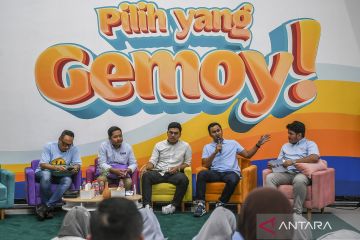Praktisi komunikasi publik Ipang Wahid (kiri) menjadi pembicara dalam talkshow Gemoy InspiraZ & AspiraZ di gedung Fanta Headquarters Prabowo-Gibran, Menteng, Jakarta, Sabtu (9/12/2023). Talk show tersebut bertema Menjahit Harapan dan Pesan GenZ untuk Pemimpin Bangsa Ke Depan. ANTARA FOTO/Galih Pradipta/aww.