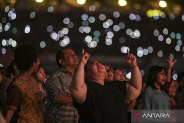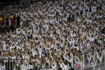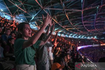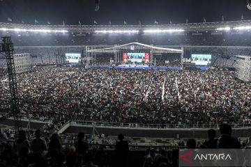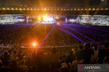 Suasana perayaan Natal Gereja Tiberias Indonesia di Stadion Utama Gelora Bung Karno, Senanyan, Jakarta, Sabtu (9/12/2023). Perayaan Natal Gereja Tiberias yang digelar setiap Sabtu pekan pertama Desember tersebut dihadiri lebih dari 200 ribu jemaat. ANTARA FOTO/Hafidz Mubarak A/aww.