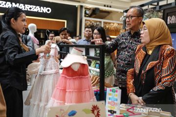 Menteri Perindustrian Agus Gumiwang Kartasasmita (tengah) bersama Direktur Jenderal Industri Kecil, Menengah, dan Aneka (IKMA) Reni Yanita (kanan) melihat produk IKM pada Gebyar IKMA 2023 di Mall Kota Kasablanka, Jakarta, Kamis (14/12/2023). Gebyar IKMA 2023 tersebut mengusung tema Innovate Locally, Thrive Globally Building Sustainable Ecosystem Through Small and Medium Industries yang diikuti 113 IKM binaan guna mendorong penciptaan dan penguatan IKM. ANTARA FOTO/Asprilla Dwi Adha/nym.