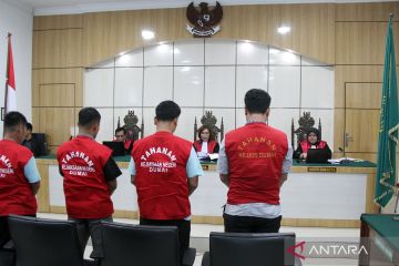 Majelis hakim Pengadilan Negeri Kelas IA Dumai membacakan putusan perkara tindak pidana perdagangan orang (TPPO) dengan terdakwa Sahat Sahril Sitanggang, Anderson Manik, Bashir Situmeang dan Darwis di Kota Dumai, Riau, Rabu (20/12/2023). Pengadilan Negeri Kelas IA Dumai memvonis bebas empat terdakwa TPPO Sahat Sahril Sitanggang, Anderson Manik, Bashir Situmeang dan Darwis karena tidak terbukti bersalah membawa masuk ke wilayah Indonesia secara ilegal di Kecamatan Sungai Sembilan Dumai 26 pekerja migran Indonesia dari Malaysia pada 12 Agustus 2023 lalu seperti yang didakwa jaksa penuntut umum. ANTARA FOTO/Aswaddy Hamid/aww.