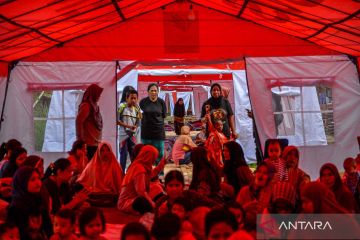 berkumpul dalam tenda pengungsian di Babakan Hurip, Kabupaten Sumedang, Jawa Barat, Rabu (3/1/2024). Pemerintah Kabupaten Sumedang menetapkan status tanggap darurat bencana gempa bumi sejak 1 Januari hingga 7 Januari 2024 dengan memfokuskan penanganan bagi masyarakat yang terdampak. ANTARA FOTO/Raisan Al Farisi/YU