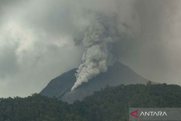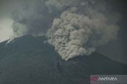 Gunung Lewotobi Laki-Laki mengeluarkan abu vulkanik terlihat di Kecamatan Wulanggitang, Kabupaten Flores Timur, NTT, Sabtu (6/1/2024). Pos Pemantau Gunung Api (PGA) Laki-Laki mencatat Gunung Lewotobi kembali erupsi pada Sabtu 6 Januari pagi dengan asap kawah bertekanan sedang hingga kuat yang teramati berwarna putih dan kelabu dengan intensitas tebal dan tinggi 1.000-1.500 meter di atas puncak kawah. ANTARA FOTO/Mega Tokan/YU