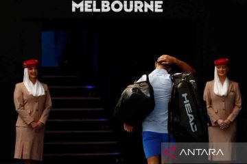 Petenis Serbia Novak Djokovic meninggalkan lapangan usai kalah dari petenis Italia Jannik Sinner pada semifinal Australia Open 2024 di Melbourne Park, Melbourne, Australia, Jumat (26/1/2024). ANTARA FOTO/REUTERS/Issei Kato/rwa.