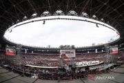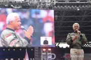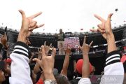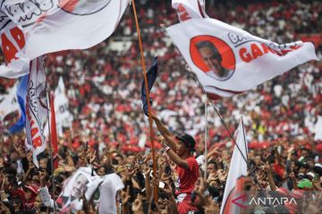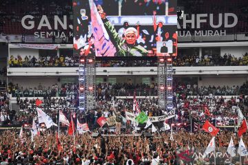Suasana kampanye akbar terbuka pasangan capres-cawapres Ganjar Pranowo dan Mahfud MD di Stadion Utama Gelora Bung Karno (SUGBK), Senayan, Jakarta, Sabtu (3/2/2024). Kampanye yang bertajuk Konser Salam Metal-Menang Total tersebut dihadiri ratusan ribu simpatisan dan relawan hingga kader partai koalisi PDI Perjuangan, Partai Persatuan Pembangunan (PPP), Partai Persatuan Indonesia (Perindo), dan Partai Hanura untuk pemenangan Ganjar Pranowo-Mahfud MD pada Pilpres 2024. ANTARA FOTO/M Risyal Hidayat/YU