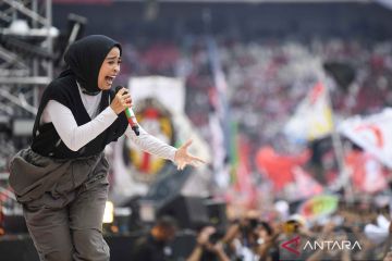 Vokalis Kotak Tantri tampil saat kampanye akbar terbuka pasangan capres-cawapres Ganjar Pranowo dan Mahfud MD di Stadion Utama Gelora Bung Karno (SUGBK), Senayan, Jakarta, Sabtu (3/2/2024). Kampanye yang bertajuk Konser Salam Metal-Menang Total tersebut dihadiri ratusan ribu simpatisan dan relawan hingga kader partai koalisi PDI Perjuangan, Partai Persatuan Pembangunan (PPP), Partai Persatuan Indonesia (Perindo), dan Partai Hanura untuk pemenangan Ganjar Pranowo-Mahfud MD pada Pilpres 2024. ANTARA FOTO/M Risyal Hidayat/YU