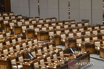 Suasana rapat paripurna ke-12 penutupan masa persidangan III tahun sidang 2023-2024 di kompleks Parlemen, Jakarta, Selasa (6/2/2024). Rapat Paripurna tersebut dalam rangka penutupan Masa Persidangan III Tahun Sidang 2023-2024. ANTARA FOTO/Galih Pradipta/tom.