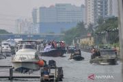 Aparat keamanan mengawal kapal tradisional yang membawa logistik Pemilu 2024 menuju ke Kepulauan Seribu di Pelabuhan Marina Ancol, Jakarta, Jumat (9/2/2024). KPU Kabupaten Kepulauan Seribu mulai mendistribusikan sebanyak 22.515 surat suara dan 320 kotak suara menggunakan kapal tradisional ke gudang logistik di Pulau Pramuka. ANTARA FOTO/Bayu Pratama S/YU