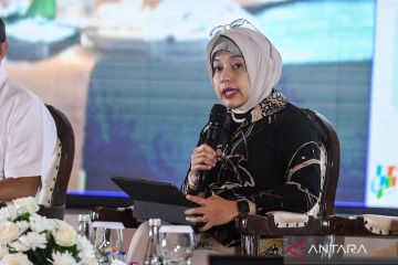 Kepala Badan Pusat Statistik (BPS) Amalia Adininggar memberikan paparan dalam rapat koordinasi pengamanan pasokan dan harga pangan di Jakarta, Senin (4/3/2024). Rapat tersebut bertujuan untuk menstabilkan pasokan dan harga pangan saat menjelang Bulan Ramadhan dan Hari Raya Idul Fitri. ANTARA FOTO/ Rivan Awal Lingga/YU