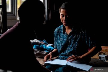 Santri tuna netra membaca ayat suci menggunakan Al Quran braile di asrama Pesantren Tuna Netra Sam'An Darushudur, Cimenyan, Kabupaten Bandung, Jawa Barat, Selasa (12/3/2024). Sebanyak 21 santri di Pesantren Sam'an Darushudur yang merupakan pesantren khusus tuna netra mengikuti metode pembelajaran menggunakan bunyi-bunyian serta hafalan Al Quran selama bulan suci Ramadhan 1445 H. ANTARA FOTO/Raisan Al Farisi/foc.