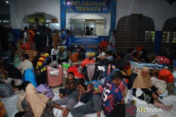Penumpang tujuan Ambon menunggu kedatangan KM Dorolonda di terminal keberangkatan Pelabuhan Ahmad Yani, Ternate, Maluku Utara, Sabtu (30/3/2024). PT Pelni Cabang Ternate bersama Kementerian Perhubungan memberikan kuota gratis kepada 300 pemudik dari Ternate menuju Ambon menjelang Idul Fitri 1445 Hijriah. ANTARA FOTO/Andri Saputra/nym.