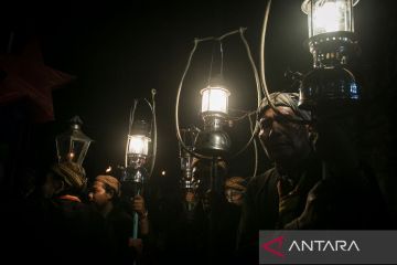 Sejumlah abdi dalem dan kerabat keraton mengikuti tradisi Kirab Malam Selikuran dengan berjalan dari Keraton Kasunanan Surakarta Hadiningrat menuju Kupel Segaran Taman Sriwedari, Solo, Jawa Tengah, Minggu (31/3/2024). Tradisi yang dimulai sejak Kesultanan Demak dan diteruskan hingga Kerajaan Mataram Islam Surakarta tersebut dilaksanakan pada 20 Ramadhan atau malam 21 Ramadhan untuk menyambut malam Lailatul Qadar. ANTARA FOTO/Mohammad Ayudha/tom.