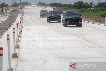 Kendaraan melintasi jalan tol fungsional Solo-Yogyakarta di Klaten, Jawa Tengah, Selasa (2/4/2024). PT Jasamarga Jogja Solo (JMJ) akan membuka jalan tol fungsional Solo-Yogyakarta sepanjang 22 km dari GT Colomadu atau GT Banyudono hingga keluar GT Ngawen, Klaten pada 5-15 April 2024 untuk mendukung kelancaran arus mudik libur Lebaran 2024. ANTARA FOTO/Aloysius Jarot Nugroho/rwa.