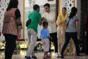 Wali Kota Solo Gibran Rakabuming Raka (ketiga kanan) beserta istri Selvi Ananda (kedua kanan) menyalami warga saat acara Open House Wali Kota di Loji Gandrung, Solo, Jawa Tengah, Rabu (10/4/2024). Wali Kota Solo Gibran Rakabuming Raka menggelar open house terakhir sebagai Wali Kota pada perayaan Idul Fitri 1445 H yang dihadiri ribuan warga. ANTARA FOTO/Mohammad Ayudha/pras.
