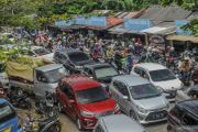 Sejumlah kendaraan roda empat dan roda dua terjebak kemacetan di Pandeglang, Banten, Kamis (11/4/2024). Kemacetan kendaraan yang didominasi kendaraan wisatawan sepanjang sekitar lima kilometer tersebut terjadi di jalur menuju kawasan wisata pantai Carita. ANTARA FOTO/Muhammad Bagus Khoirunas/foc.