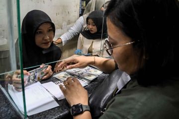 Sejumlah warga mengantre untuk menukarkan uang di salah satu gerai penukaran uang asing di Jakarta, Rabu (17/4/2024). Nilai tukar rupiah melemah terhadap dolar Amerika Serikat (AS) hingga menembus Rp16.250 ribu per dolar AS pada Rabu (17/4/2024). ANTARA FOTO/Sulthony Hasanuddin/YU