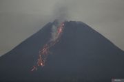 Luncuran lava pijar keluar dari kubah lava Gunung Merapi terlihat dari Turi, Sleman, DI Yogyakarta, Selasa (23/4/2024) malam. Menurut data BPPTKG periode pengamatan 23 April 2024 pukul 00.00 - 24.00 WIB telah terjadi 18 kali guguran lava dengan jarak luncur maksimal 1.300 meter dan menunjukkan suplai magma masih berlangsung yang dapat memicu terjadinya awan panas guguran Gunung Merapi. ANTARA FOTO/Hendra Nurdiyansyah/foc.