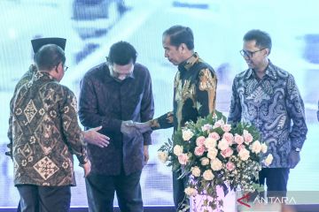 Presiden Joko Widodo (kedua kanan) menyalami Menko Marves Luhut Binsar Pandjaitan (kedua kiri) disaksikan Menteri Kesehatan Budi Gunadi Sadikin (kanan) dan Sekretaris Kabinet Pramono Anung (kiri) saat peluncuran Pendidikan Dokter Spesialis Berbasis Rumah Sakit Pendidikan sebagai Penyelenggara Utama (Hospital Based) di halaman RSAB Harapan Kita, Jakarta, Senin (6/5/2024). Program tersebut diharapkan dapat mempercepat pemenuhan dokter spesialis di Indonesia terutama di daerah-daerah tertinggal, perbatasan dan Kepulauan. ANTARA FOTO/Hafidz Mubarak A/foc.
