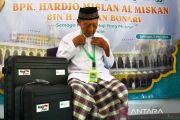 Calon haji Hardjo Mislan alias Miskan (kiri) didampingi salah seorang anak menantunya di rumahnya Desa Bedingin, Kecamatan Sambit, Kabupaten Ponorogo, Jawa Timur, Sabtu (11/5/2024). Hardjo Mislan yang berusia 110 tahun dan mendaftar haji pada 18 Februari 2019 merupakan calon haji tertua Indonesia tahun ini yang rencananya berangkat dari Ponorogo pada 14 Mei dengan kloter pertama embarkasi Surabaya. ANTARA FOTO/Siswowidodo/tom.