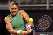 Petenis putri Yunani Maria Sakkari mengembalikan bola ke lawannya petenis putri Belarus Victoria Azarenka pada babak 16 besar tenis Italia Terbuka di Foro Italico, Roma, Italia, Senin (13/5/2024). Azarenka melaju ke babak selanjutnya setelah mengalahkan Sakkari dengan skor 6-4, 6-1. ANTARA FOTO/REUTERS/Claudia Greco/Spt.