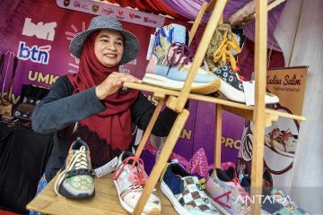 Peserta menyusun sepatu di salah satu stan UMKM saat puncak Gerakan Nasional Bangga Buatan Indonesia dan Bangga Berwisata di Indonesia (Gernas BBI-BBWI) di Palembang, Sumatera Selatan, Minggu (26/5/2024). Otoritas Jasa Keuangan (OJK) terus mendukung pertumbuhan UMKM serta pengembangan sektor pariwisata dan ekonomi kreatif Indonesia agar terus berkontribusi dan menjadi pilar utama perekonomian nasional. ANTARA FOTO/Nova Wahyudi/rwa.