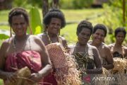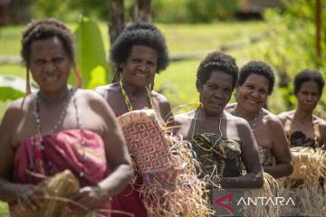 Sejumlah warga suku Moi memegang anyaman noken yang mereka buat di Kampung Malasigi, Distrik Klayili, Kabupaten Sorong, Papua Barat Daya, Rabu (12/6/2024). Pertamina EP Papua Field yang bekerja sama dengan Pemprov Papua Barat daya, Pemda Kabupaten Sorong, Balai Perhutanan Sosial dan Kemitraan Lingkungan (BPSKL) Maluku Papua, Balai Besar Konservasi Sumber Daya Alam (BBKSDA) Papua Barat, Yayasan Kasuari Tanah Papua dan Himpunan Pramuwisata Indonesia (HPI) Papua Barat Daya memberikan pendampingan wisata minat khusus yang menawarkan keanekaragam hayati, sumber daya alam hutan dan budaya. ANTARA FOTO/Erlangga Bregas Prakoso/Spt.