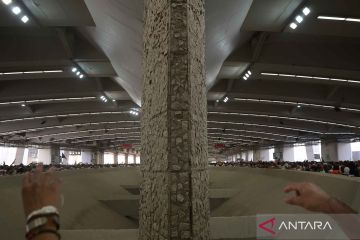 Jamaah haji melempar jamrah aqobah di Jamarat, Makkah, Arab Saudi, Minggu (16/6/2024). Lempar jamrah aqobah merupakan salah satu syarat yang wajib dilakukan pada ibadah haji sebagai simbol pengusiran setan yang pernah dilakukan Nabi Ibrahim AS. ANTARA FOTO/Sigid Kurniawan/YU
