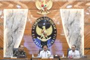 Menko Polhukam Hadi Tjahjanto (tengah) didampingi Menkominfo Budi Ari Setiadi (kiri) dan Kepala PPATK Ivan Yustiavandana (kanan) memimpin Rapat Koordinasi Tingkat Menteri tentang pemberantasan judi online di Kemenko Polhukam, Jakarta, Rabu (19/6/2024). Rapat perdana Satgas Pemberantasan Judi Online itu digelar setelah dibentuknya satgas tersebut oleh Presiden Joko Widodo pada 14 Juni 2024 dalam upaya percepatan pemberantasan judi online secara tegas dan terpadu. ANTARA FOTO/Hafidz Mubarak A/aww.