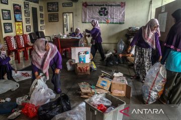 Warga bersama petugas bank sampah Bougenville memilah sampah di Komplek Perumahan Deppen, Pemancar, Kota Depok, Jawa Barat, Sabtu (22/6/2024). Menurut data Kementerian Lingkungan Hidup dan Kehutanan (KLHK), Indonesia tercatat memiliki 27.631 unit bank sampah dengan total omzet rata-rata Rp2,8 miliar per bulan dan bank sampah tersebut mampu menyerap tenaga kerja hingga ratusan ribu orang dan mengumpulkan sebanyak 136.860 ton sampah. ANTARA FOTO/Yulius Satria Wijaya/rwa.