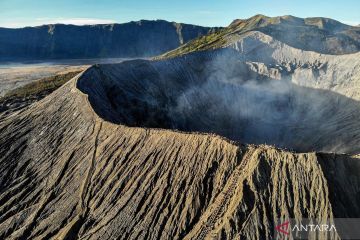 Foto udara masyarakat Suku Tengger merayakan Yadnya Kasada di kawah Gunung Bromo, Probolinggo, Jawa Timur, Sabtu (22/6/2024). Perayaan Yadnya Kasada merupakan bentuk ungkapan syukur dan penghormatan kepada leluhur masyarakat Suku Tengger dengan cara melarung sesaji berupa hasil bumi dan ternak ke kawah Gunung Bromo. ANTARA FOTO/Muhammad Mada/aww.