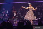 Penyanyi Ruth Sahanaya tampil dalam Konser 40 Tahun Simfoni dari Hati di Jakarta Convention Center, Senayan, Jakarta, Sabtu (22/6/2024). Ruth Sahanaya menggandeng Tohpati sebagai penata musik serta tampil bersama Yura Yunita, Once, Afgan, dan Silent Open Up dalam konser yang memperingati 40 tahun berkaryanya diva Indonesia tersebut. ANTARA FOTO/Sulthony Hasanuddin/aww.